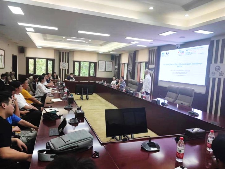 Joseba教授展示了UNS S30432超奥氏体无缝不锈钢挤压工艺的AUSC先进建模技术,讲解了与Batz集团和Autoform公司合作的先进汽车板成形工艺研究,介绍了AA5754铝盒进步电流辅助多场耦合先进成形工艺的相关成果。讲座中Joseba Mendiguren教授也分享了在研究和学习中的个人思考和工作方法,给在座的师生提供了学习思路与实验方法。会场气氛活跃,与会师生与报告人积极互动、相互交流,加深了双方的相互了解,提升了对相关专业问题的理解,拓展了大家的学术视野。