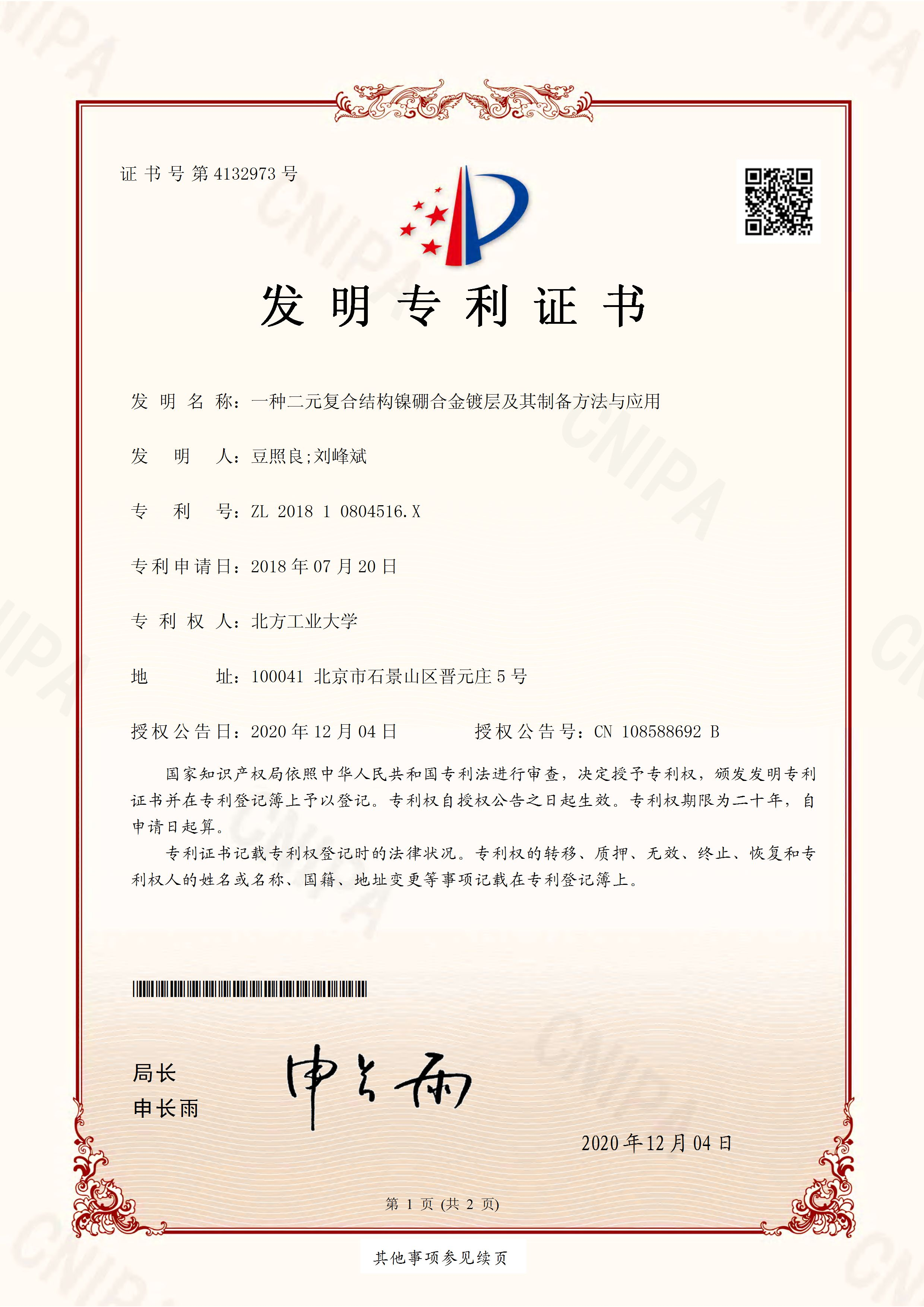 一种二元复合结构镍硼合金镀层及其制备方法与应用 |