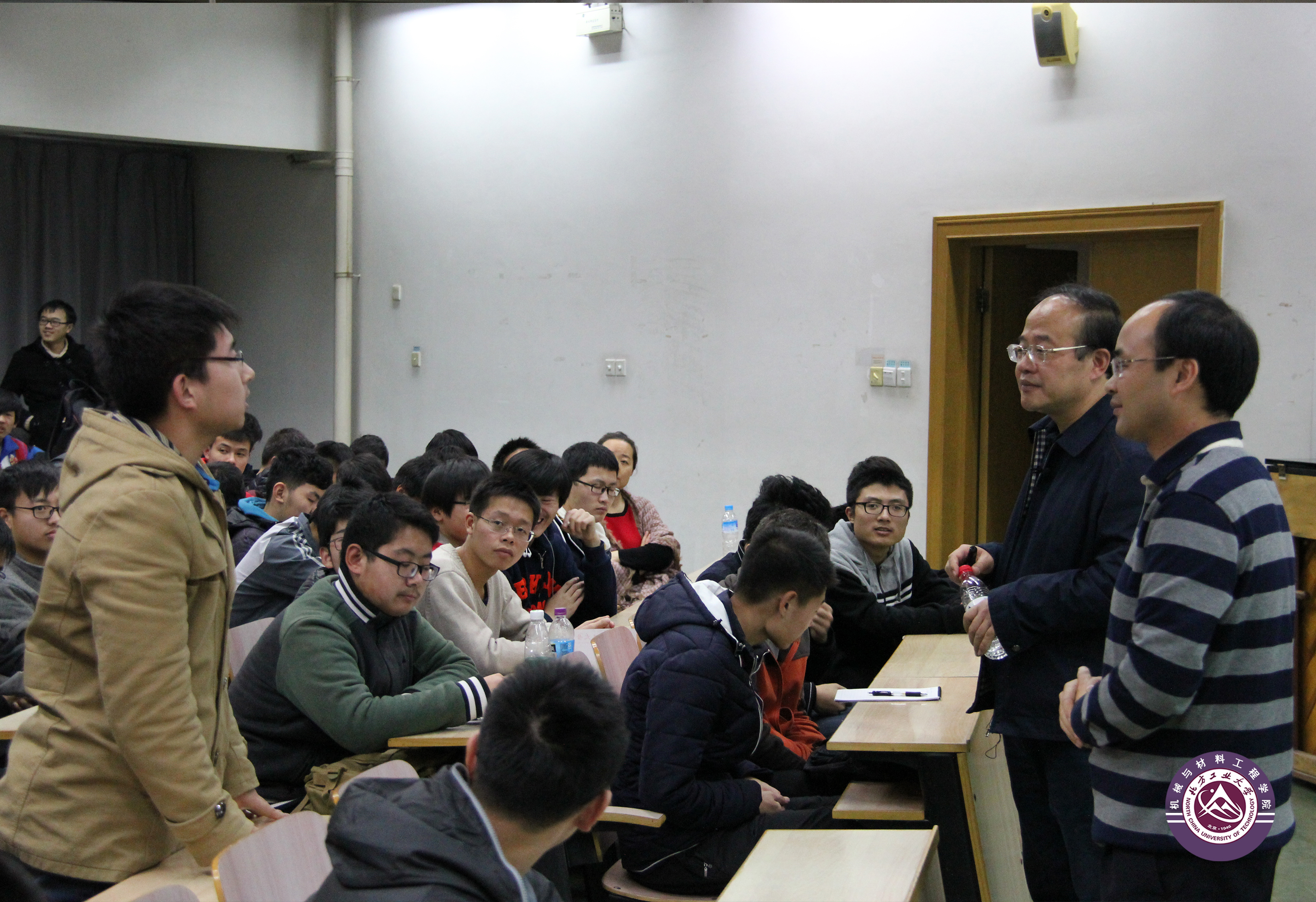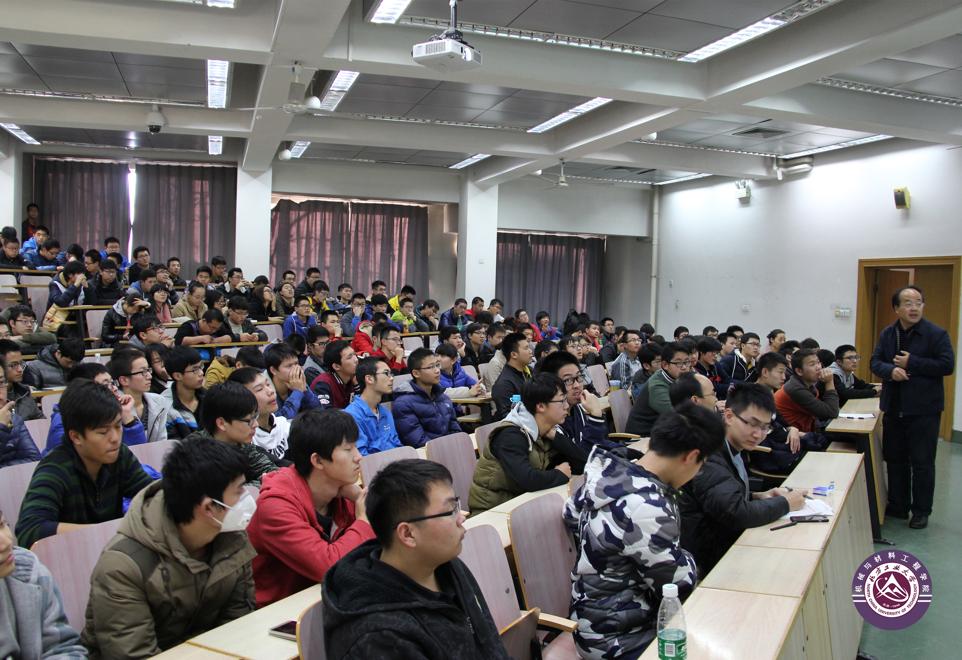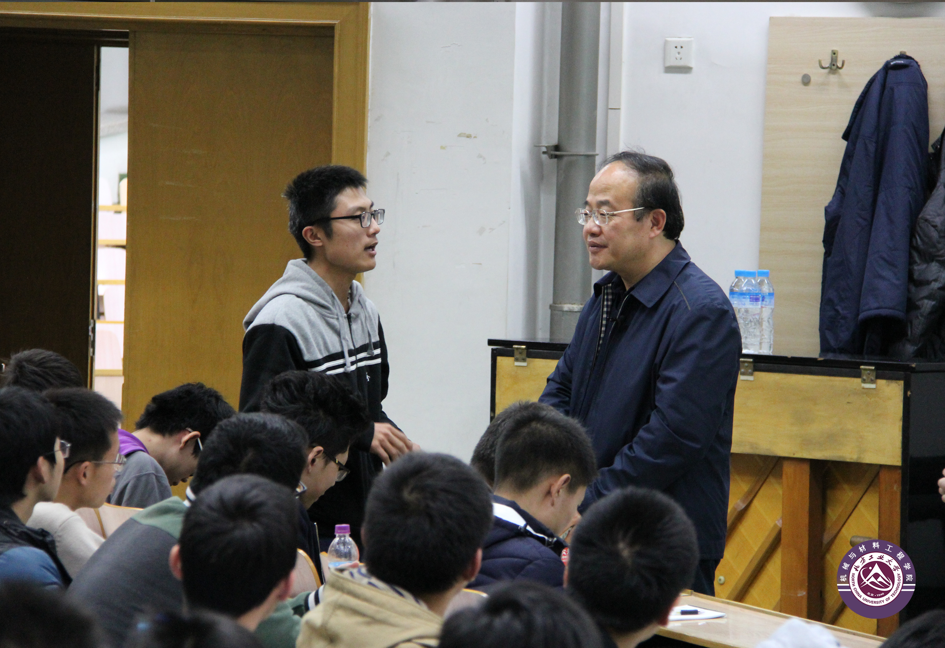其次,李教授与新生们分享了自己的求学与工作经历。他首先以自己保存完好的30多年前聆听入校启蒙报告的笔记本为例,鼓励新生们珍惜学习机会,从现在开始树立远大理想。他以身边的杰出校友与自己为例,鼓励大家不要对北方工大人的身份妄自菲薄,上什么样的大学不重要,只要自己努力,一样可以成才。李教授还分享了自己学习英语和数学的经历,刚入学时,自己对英语老师讲的东西都听不懂,但是自己肯下工夫,听坏了10台单放机,最终才能走上清华的讲台,用英语为本科生讲授《机械设计》课程;此外,他还利用一个暑假的时间,将《吉米多维奇数学分析习题集》的4000多道习题做了一遍,所以每学期数学都拿满分,最终以数学第一的成绩考入北航攻读硕士学位。李教授还结合自己参与的载人航天空间站以及某型号雷达的减震和密封等科学问题,鼓励新生们要勤于动脑,灵活运用所学知识。此外,李教授还鼓励新生们多读书,做博学和具有广阔视野的大学生,当李教授告诉同学们自己收藏了超过10多万册图书时,现场爆发出一片惊叹声和雷鸣般的掌声。最后,李教授结合法拉第的故事,勉励同学们要不为名不为利,刻苦学习,不辜负父母、老师和社会的期望。