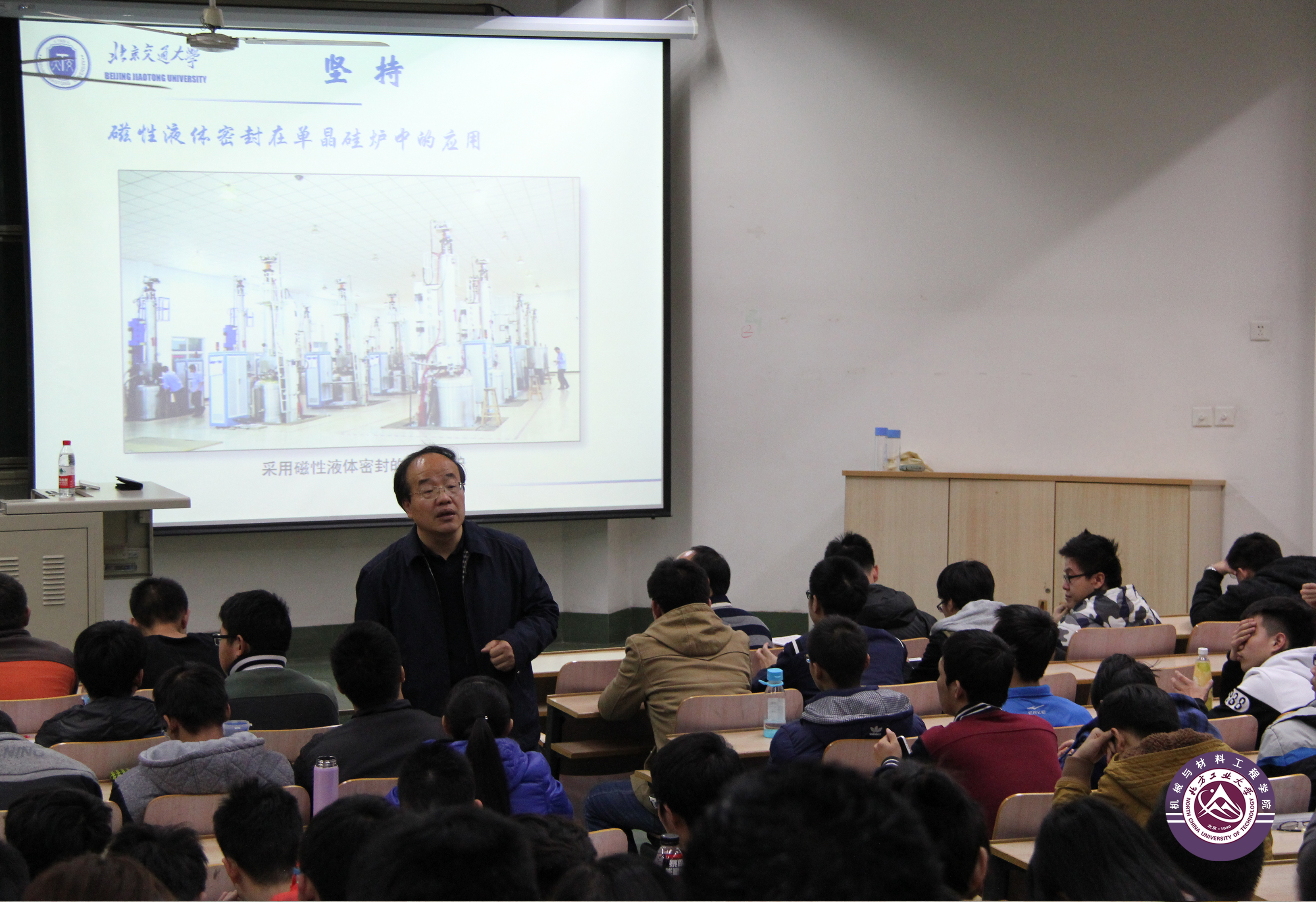李教授首先简要介绍了自己所从事的科研工作,他结合自己的科技攻关经历,深入浅出的讲解了磁性液体及其应用,尤其是在密封方面的应用。