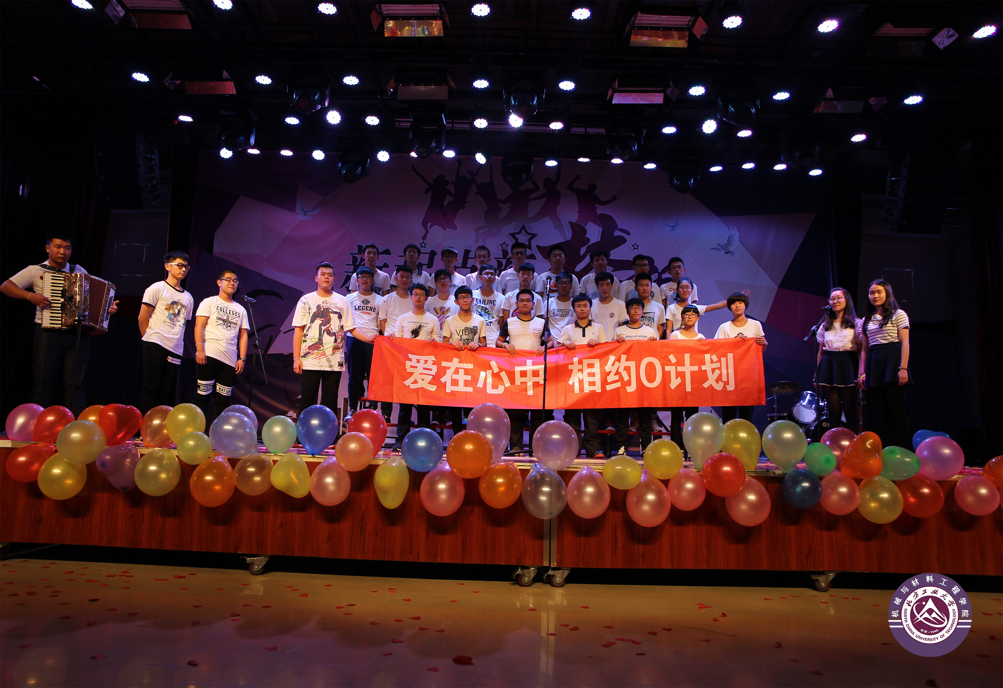 授予仪式结束后,迎新晚会在南舞团带来的劲爆舞蹈中拉开了序幕。新生们组织了《炒饼的故事》、《超幸福校服》和《男生宿舍的蜕变》等小品,用幽默诙谐的方式展示了对大学生活的感悟;通过歌曲串烧和乐队表演等丰富多样的节目,展现了新生们的多才多艺和青春活力;小辅导员代表、国家奖学金获得者刘聪带来的歌曲《异乡人》将活动推向高潮;最后,晚会在合唱《爱,因为在心中》中拉下了帷幕,同学们喊出了“爱在心中,相约O计划”的心声。