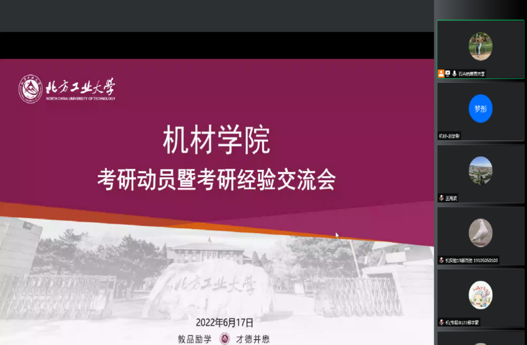2022届考研代表围绕备考经验、院校选择和心态调整进行了分享。保研到北京科技大学的刘竞一提醒大家在考研过程中,不仅要尽早做好考研的准备,保持良好的心态,还要了解自己的兴趣爱好,正确选择专业。考上北京航空航天大学的王玉告诉同学们考研要有信心,要耐得住寂寞,要讲究复习方法,只要肯下工夫就一定可以成功。一志愿考上本校的安畅全面细致分享了考研路上的历程和经验,鼓励大家养成良好的学习习惯,根据自身情况理性地选择目标院校。考上beat365正版唯一入口必一的杨光勉励大家放弃舒适的生活方式,抓住机会,用努力和奋斗实现自己的价值。调剂到宁夏大学的隗丹琳从自身经验出发提醒大家学校的选择很重要,可以根据其他“上岸人”的经验,调整适合自己的专业和学校。