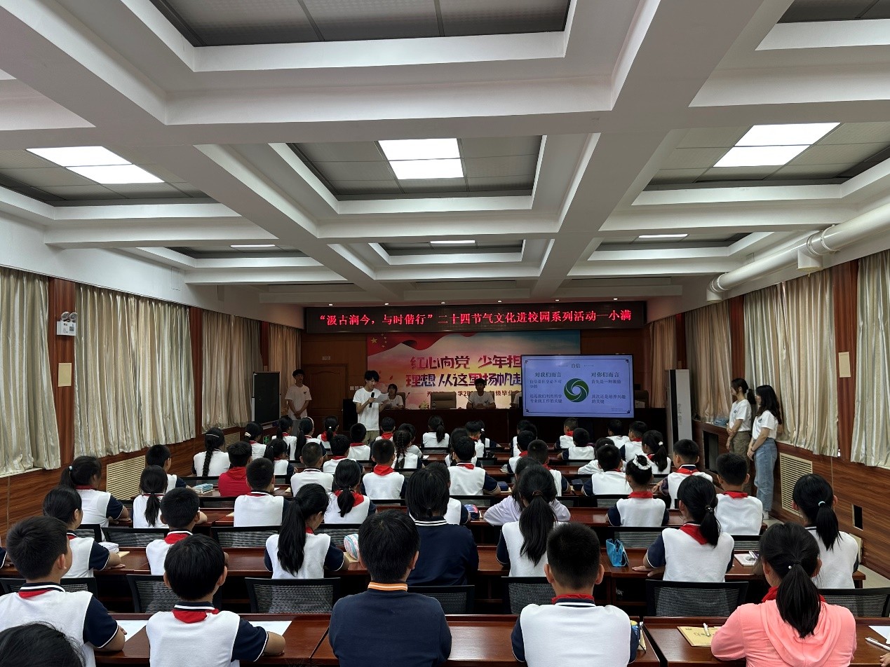 为深化校地合作,弘扬中华优秀传统文化,学院团委书记李旭带队学院大学生志愿者赴天竺镇中心小学与天竺镇团委联合开展了“汲古润今,与时偕行”二十四节气文化进校园系列活动,共计70余名学生参加。