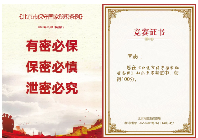 为切实强化职工国家安全观念和保密法治意识,增强做好新时代保密工作的责任感和使命感,2022年9月26日至2022年9月29日,机械与材料工程学院分工会开展《保密条例》知识答题活动。全院共90名职工积极参加此次《保密条例》知识答题活动,通过学习培训取得电子证书。同时,就如何实施好贯彻好《保密条例》开展了“加强保密宣传教育”“健全完善保密管理制度”“强化保密防护措施”“加强保密督促检查”等保密宣传教育工作。