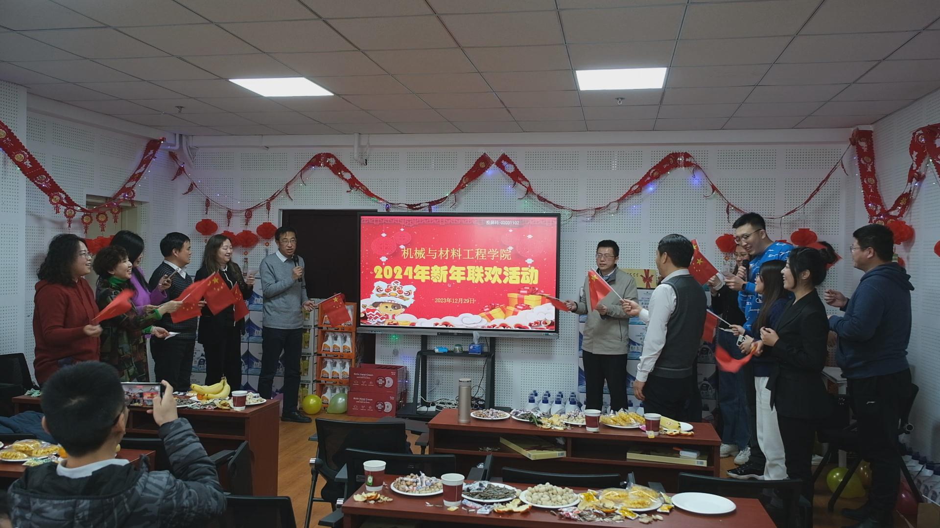 12月29日,机械与材料工程学院在博才楼202多功能厅举行了2024年迎新联欢活动。学院全体教职工参加了活动。活动现场被火红的拉花和灯笼装点得温馨祥和、暖意融融,洋溢着喜庆的节日气氛。中午12:30,大家欢聚一堂,共迎元旦佳节。