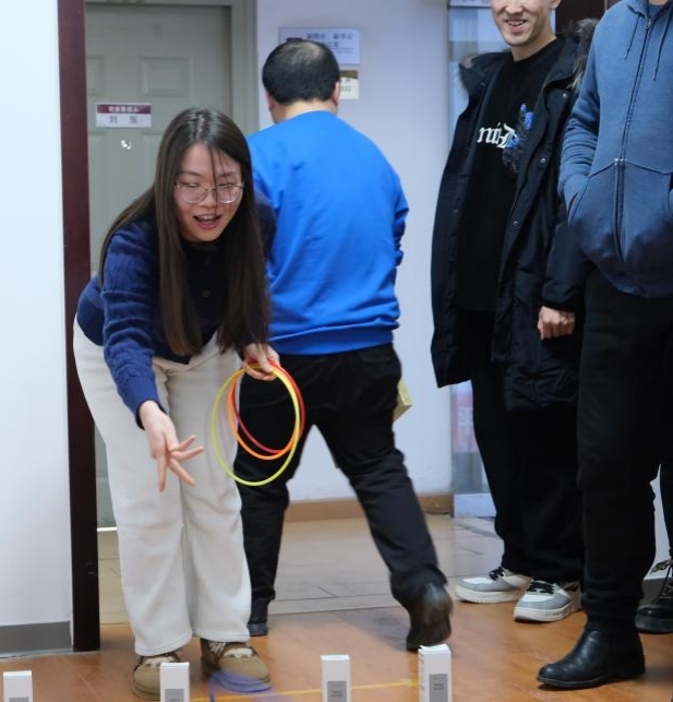 在联欢活动中,各系、中心、办公室教职工用饱满的情感分别演唱了《我和我的祖国》《歌唱祖国》等歌曲,用真情歌唱伟大祖国、共迎美好明天。现场气氛热烈欢快。老师们兴致勃勃地参加了“比比划划”、贴鼻子、夹乒乓球、猜灯谜、套圈、写福字、下象棋等丰富多彩的游艺活动。在活动中,老师们愉悦了心情、沟通了思想、交流了情感,激发了为学院发展再立新功、谱写新篇的劲头。