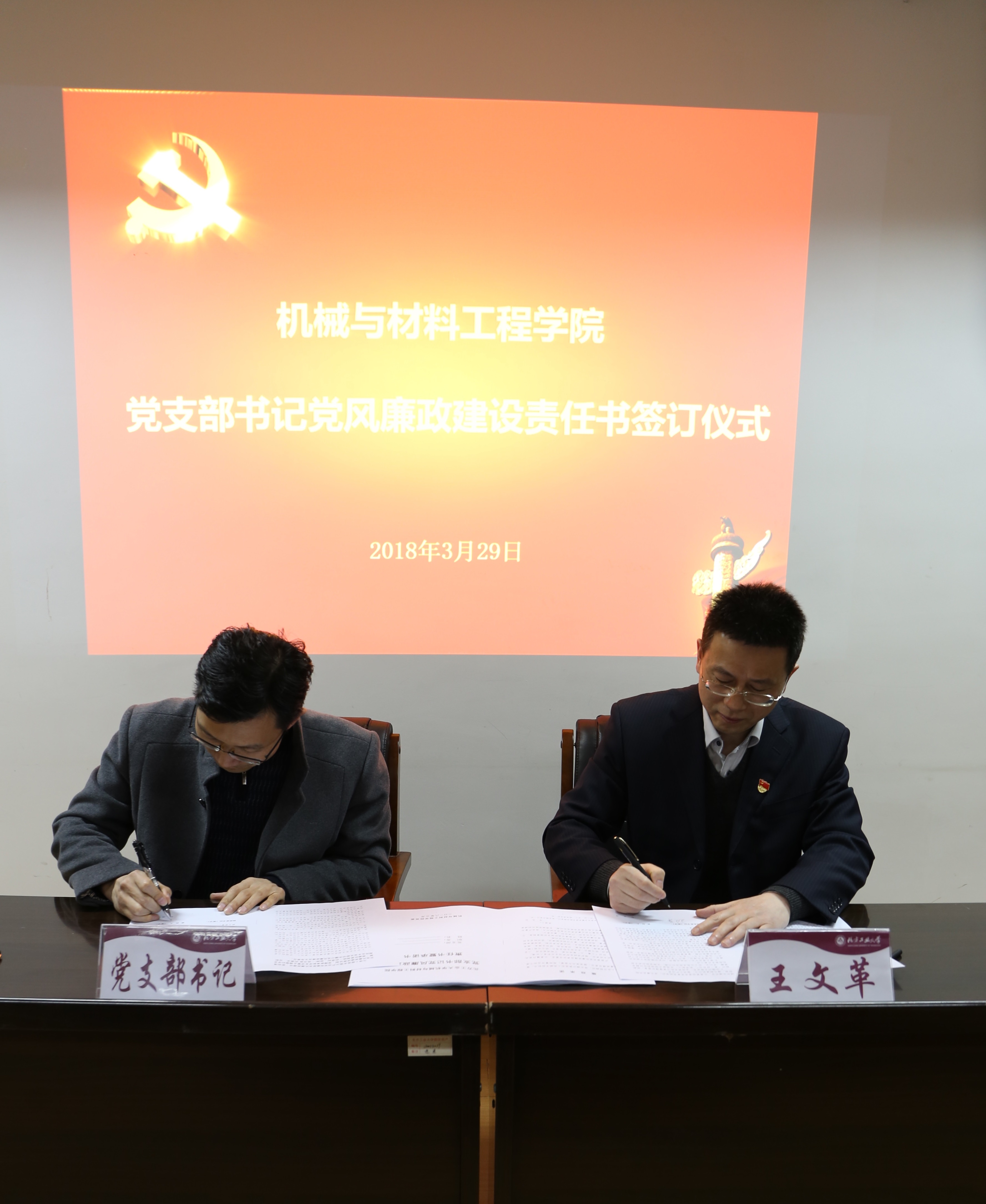 机械与材料工程学院党委与全体党支部书记签订党风廉政建设责任书