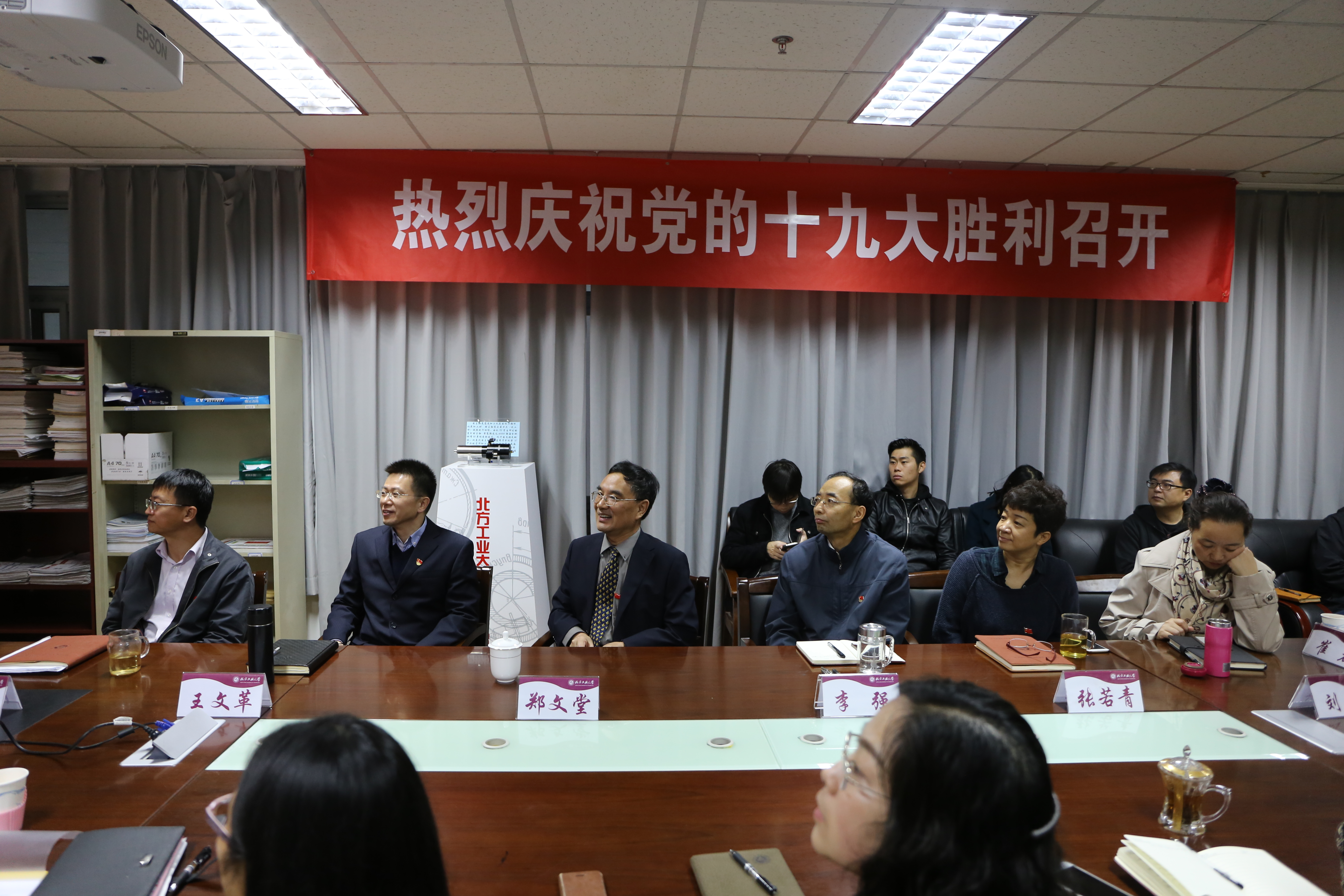 开幕会结束之后,郑文堂书记发表讲话,他指出:观看十九大开幕会,很受鼓舞,下一阶段,全体师生党员要学习、宣传、贯彻、落实党的十九大精神,将思想认识统一到习近平新时代中国特色社会主义思想上来,进一步加强党的建设和党对工作的全面领导,不忘初心、牢记使命,团结带领全体师生,走好学院的长征路,努力建设高水平教学研究型学院,为实现工大梦、中国梦做出应有的贡献。