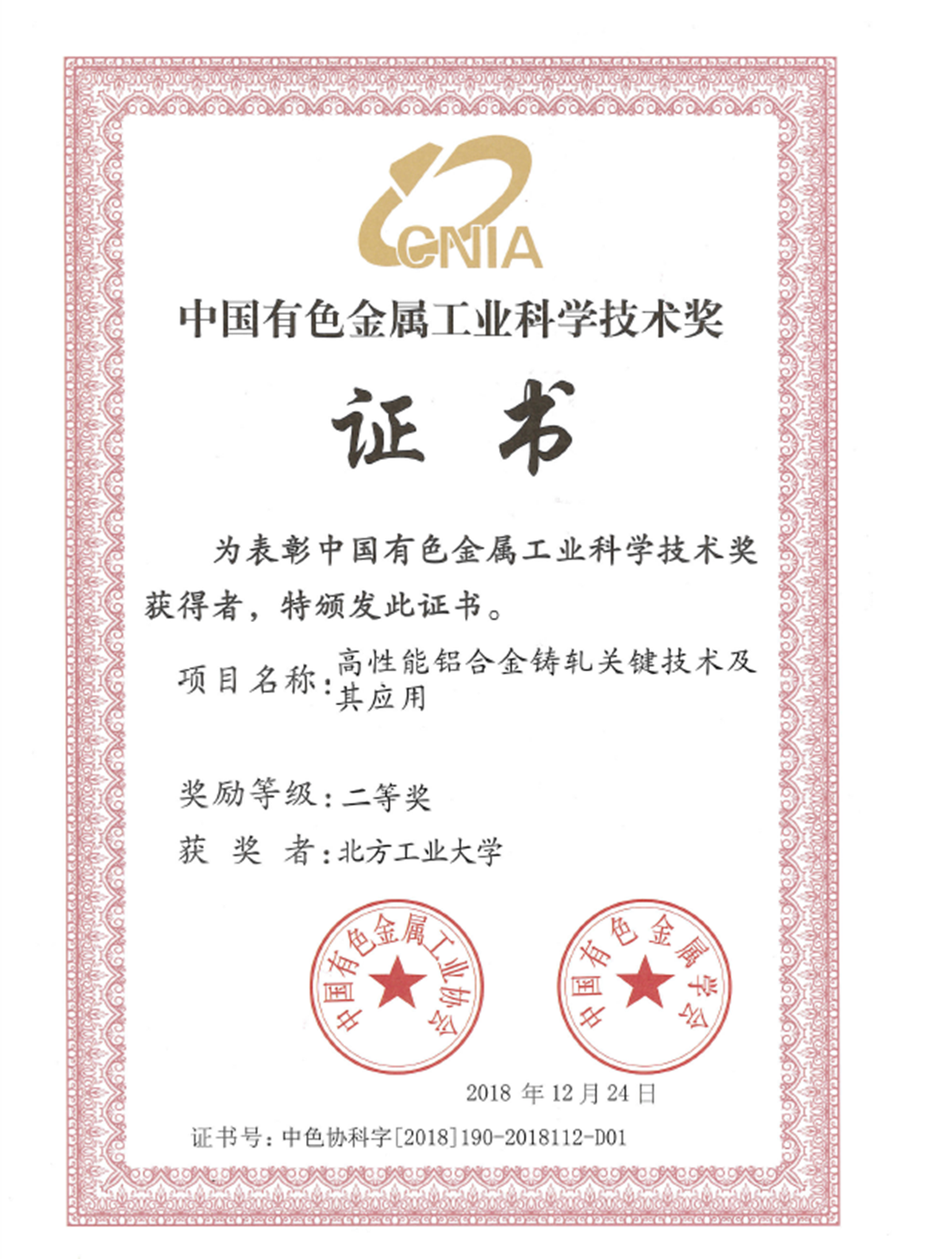 该项目由我院朱远志教授为第一完成人,我校曾水平教授、史运涛教授等专家学者参与完成。该项目旨在解决我国铝合金短流程铸轧工艺生产高品质铝合金中的关键瓶颈技术问题,通过13年的研究攻关,掌握了铸轧铝合金组织和成分的基本遗传规律,解决了铸轧工艺深加工表面质量控制难题。运用该技术生产的产品在爱立信等国际知名公司得到应用,产品质量达到热轧水平。
