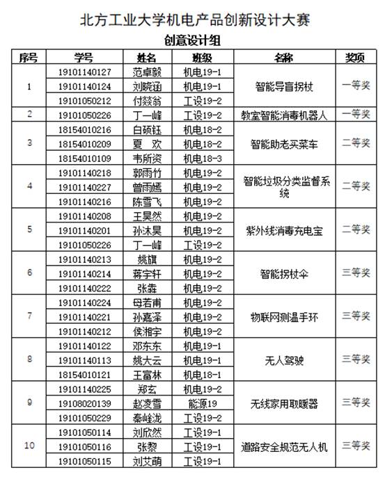 通过同学们精彩讲解和实物演示,共有17组同学获奖。其中:创意设计赛项评出一等奖2组,二等奖3组,三等奖5组;实践应用赛项评出一等奖2组,二等奖5组。