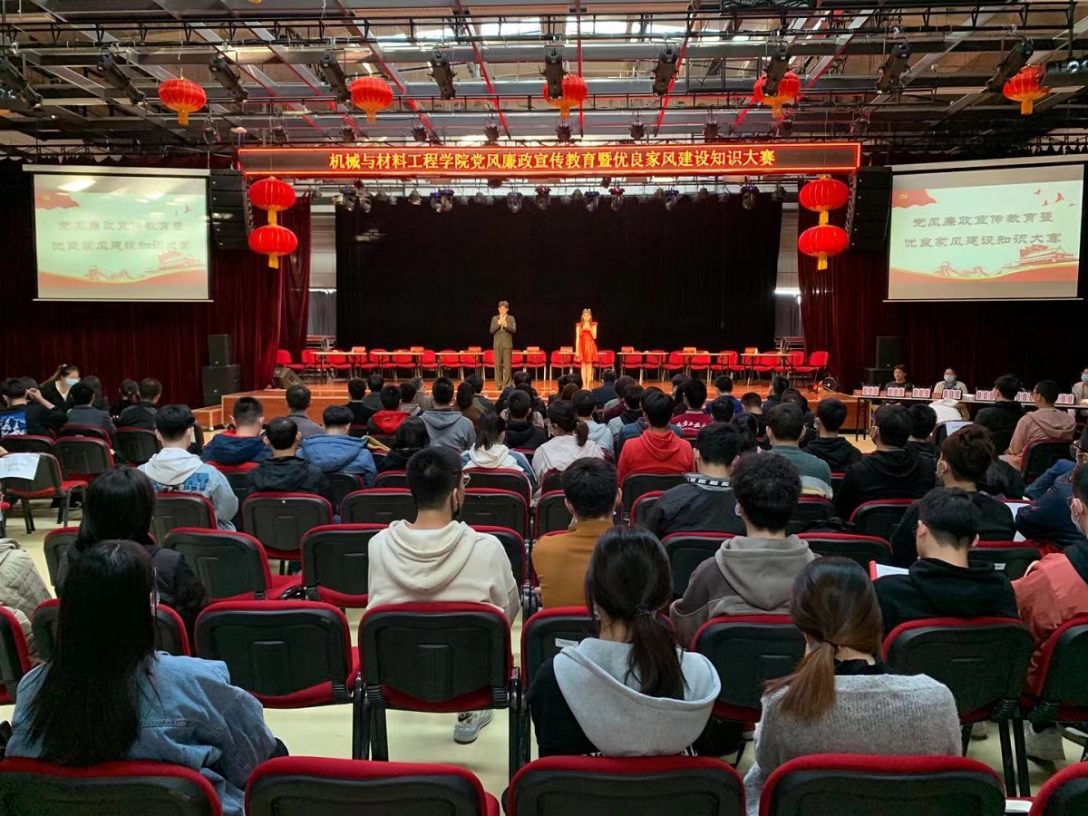 11月12日下午,机械与材料工程学院党风廉政宣传教育暨优良家风建设知识大赛在学生多功能厅顺利举办。全院师生党员、入党积极分子、学生代表近400人一同观看了知识大赛。