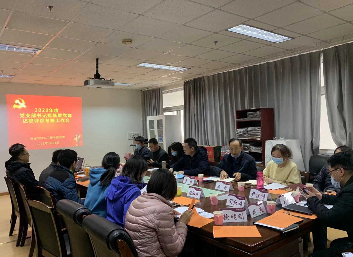 3月18日下午,机械与材料工程学院在博才楼203召开2020年度党支部书记党建述职评议考核工作会。学院党委委员、各党支部书记参加会议。学校党委组织部副部长杨朋出席会议。会议由学院党委书记王文革主持。