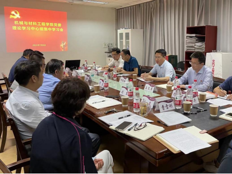 7月8日下午,机械与材料工程学院党委理论学习中心组召开集中学习会。会议集中学习习近平总书记在庆祝中国共产党成立100周年大会上的重要讲话。学校党委书记缪劲翔出席会议。院党委书记王文革主持学习会,学院班子成员、党委委员、系/中心主任、分工会负责同志等参加集中学习。学校党史学习教育校内巡回指导组第五组成员、校宣传部副部长尉峰参加会议。