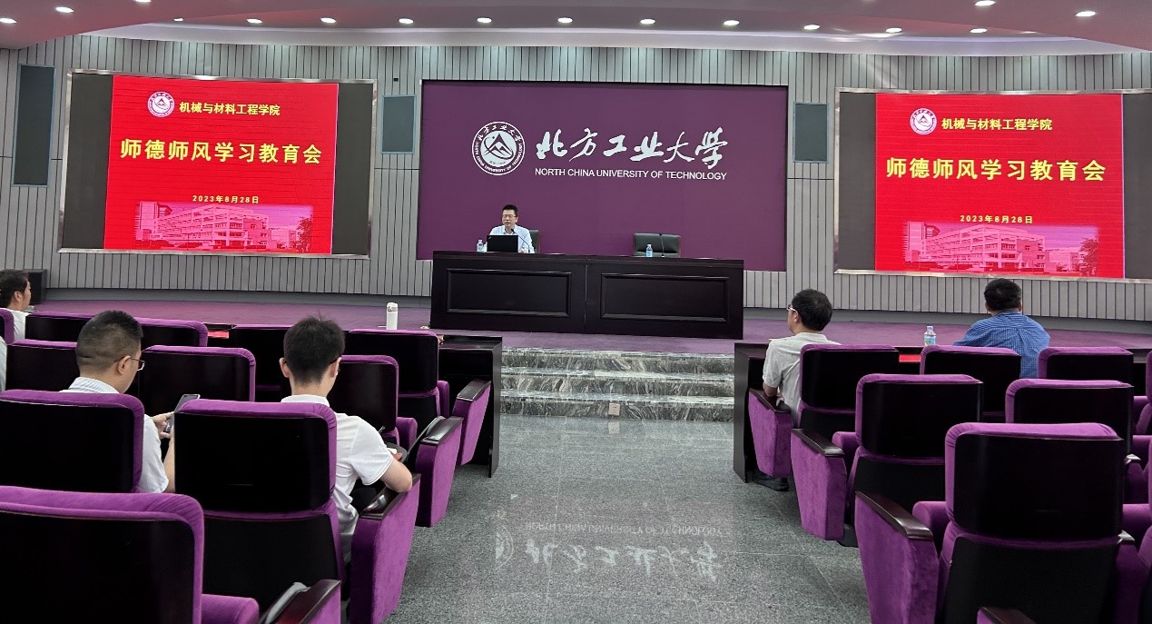 机械与材料工程学院积极推动落实学校党委关于加强师德师风建设学习教育的部署,于8月28日在广学楼报告厅召开师德师风学习教育会。会议由学院党委书记王文革主持,学院全体教师、全体院班子成员参加。