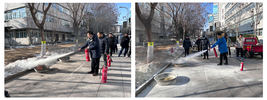演练以博才楼出现“火情”开始,浓烟触发烟感报警,警报响起。在场师生按照灭火和疏散应急预案,在迅速断电断气、关闭门窗后,按照疏散线路,有序撤离到楼外安全场地“避险”。楼内师生全部撤离到安全场地后,安稳部(处)和学院组织师生在博才楼南侧进行灭火实操培训。安稳部(处)消防管理中心主任官鹏向现场师生讲解了疏散逃生要领,示范了灭火器的使用方法。学院班子成员和现场师生练习用灭火器灭真火。应急演练顺利开展,达到预期效果。