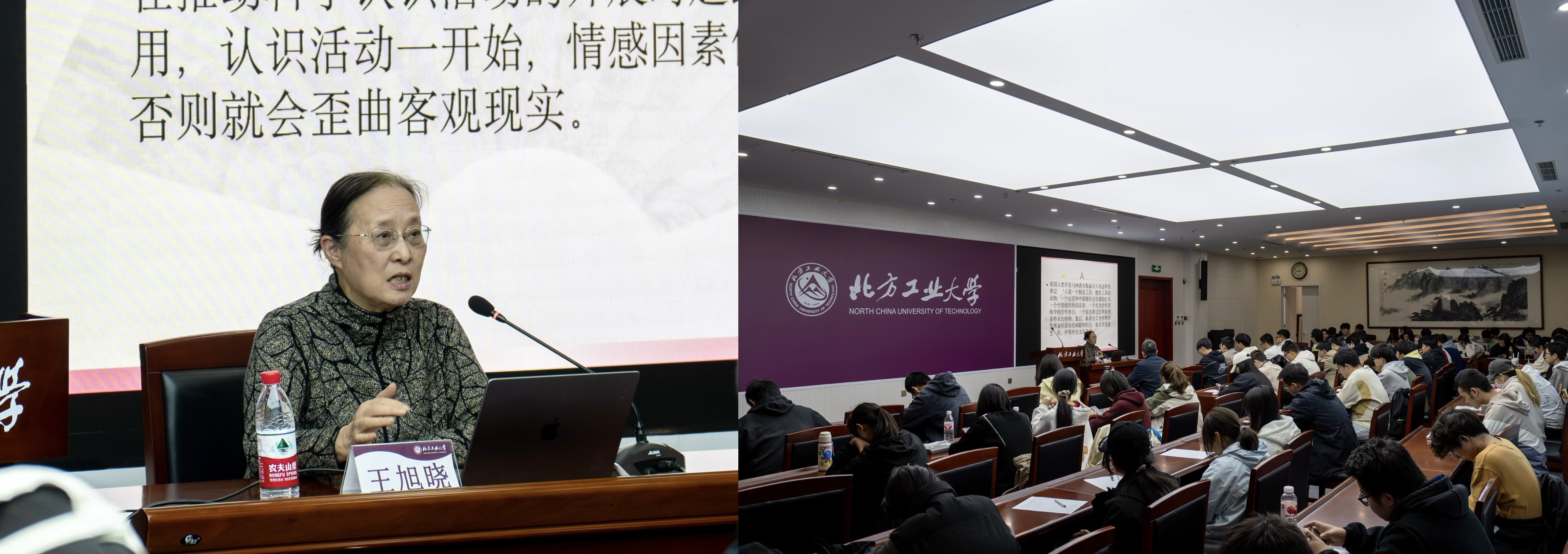 报告中,王旭晓教授以审美与人生的关系为主线生动阐述了审美活动的含义、审美与人生的关系。她指出,在审美活动中审美主体和审美客体之间的关系是一种价值关系,审美活动是一种精神享受的需要。她分析了审美活动的超功利性特征、主体性特征和感性特征,结合美学前辈朱光潜先生的人生经历,深入浅出地讲解了审美与人生的紧密关系。她说,对美的追求是人生永恒的追求,美能够使人感受到生命的美好,也能够给予人希望和力量。她希望大家用美照亮人生,不断提升人生境界,追求更加美好的人生,让人生充满诗意和精彩。王旭晓老师的报告受到师生欢迎。