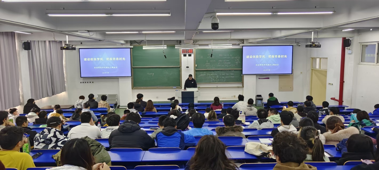 辅导员张景斌结合学校新修订的《本科学生学籍管理规定》,对学业预警制度、推免绩点分计算办法以及历年奖学金评定标准进行了详细解读;对近期课堂检查、宿舍走访中发现的典型问题进行了原因分析,并提出了改进要求;鼓励班级骨干要成为学风建设的先行者和实践者,以身作则,影响并带动周围同学。