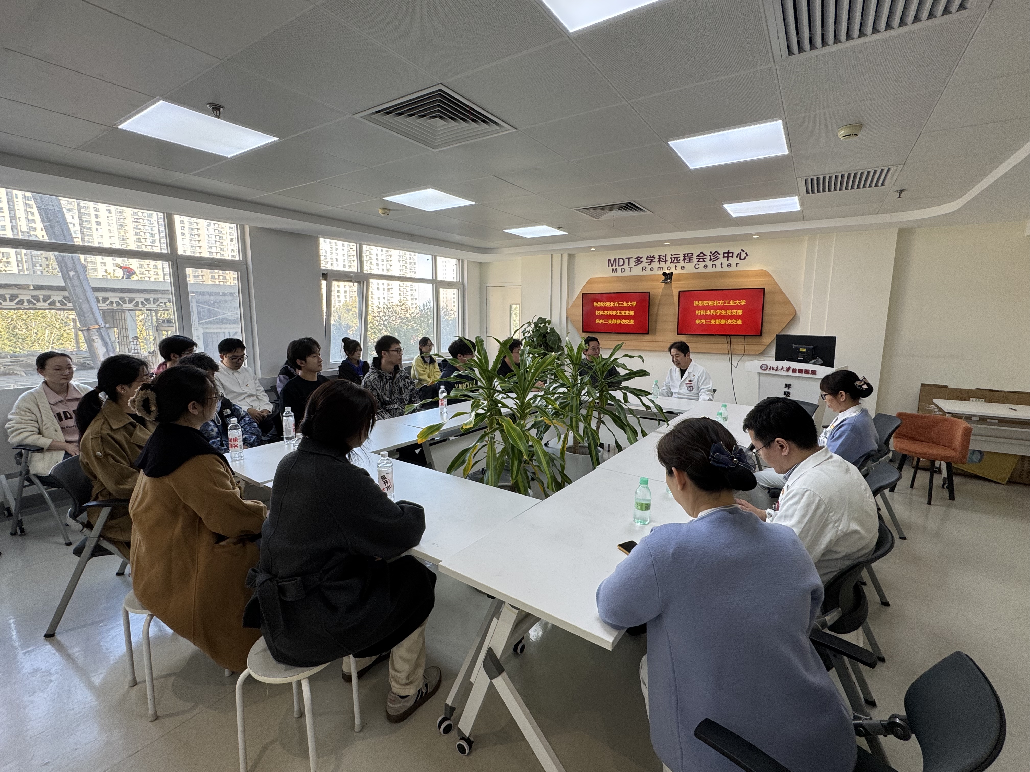 2025年10月31日,我院材料本科学生党支部与首钢医院内科临床部第二党支部双方党支部联合开展“红色1+1”支部共建活动。两支部成员齐聚一堂,以值岗、访谈等活动,开展两个基层党组织之间的交流学习。