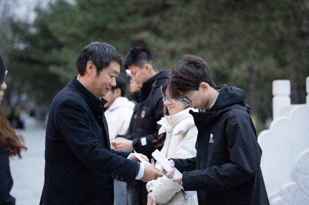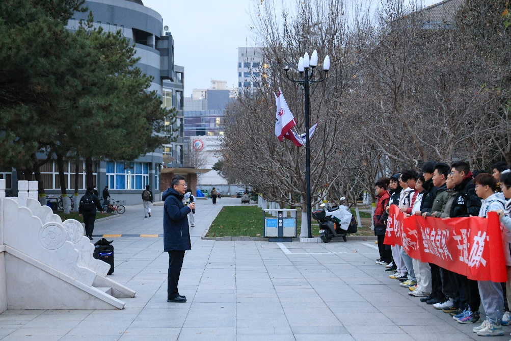 清晨,寒风凌冽,随着国旗护卫队迈着整齐划一的步伐入场,全场师生肃立致敬在雄壮的国歌声中,五星红旗冉冉升起,迎风飘扬。副院长刘东为获评beat365正版唯一入口必一“学习领航奖”的24级学生代表颁发了荣誉证书。