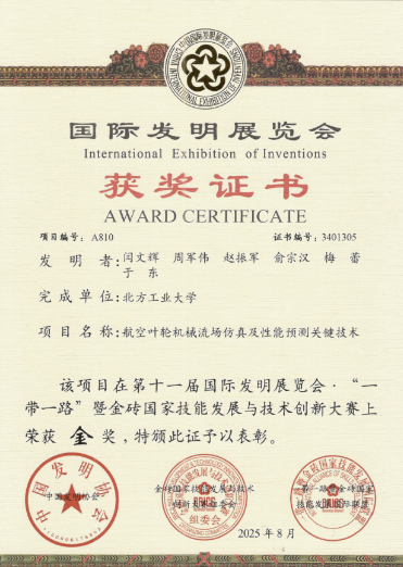 航空叶轮机械的气动性能直接影响发动机的效率、可靠性甚至飞行器的整体性能。针对快速准确预测叶轮机械气动性能的关键问题,该项目提出了各向异性湍流模型建模理论,发明了高质量正交重叠网格生成方法,有效提升了叶轮机械复杂分离流动中,湍流各向异性特征的捕获能力。研究成果较广泛地服务于多家航空企业,取得了良好的经济效益。该技术在2025年第十一届国际发明展览会暨“一带一路”金砖国家技能发展与技术创新大赛上也获得了金奖。