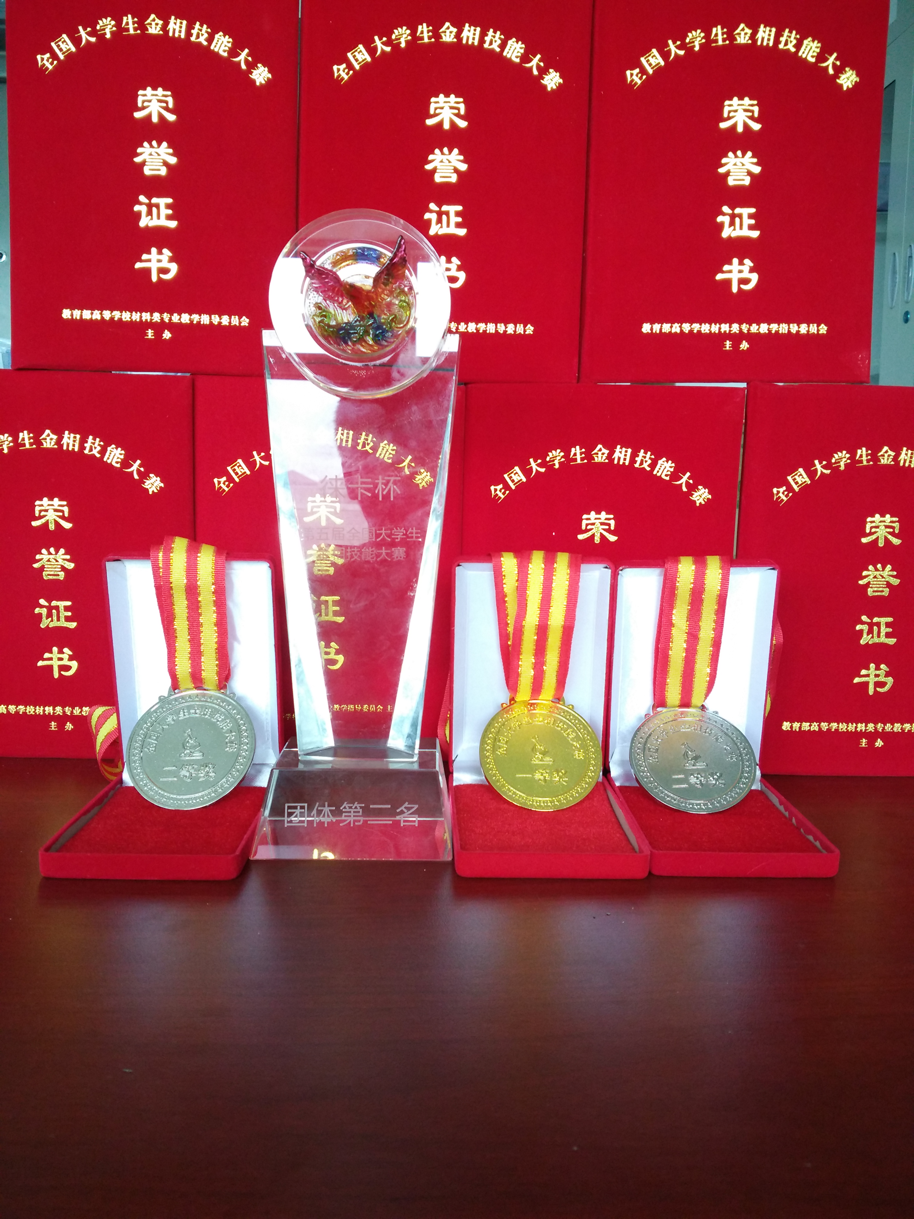 我校派出的3名参赛选手在经历了复赛、半决赛和决赛三轮比赛后,经过激烈角逐最终从众多高校中脱颖而出。来自我院材料科学与工程系的13级本科生张玮同学获得了个人一等奖及本届比赛唯一一个“莱卡特别奖”,并代表所有参赛选手上台讲话。由于比赛规则所限,来自我院材料科学与工程专业14级本科生张瑞琦同学和材料成型及控制工程专业14级本科生董和谦同学均获得了个人二等奖。由于这三名同学的出色发挥,我校最终在所有参赛高校中以团体总分排名第2名的好成绩喜获团体特等奖!两名指导教师朱远志、蒙毅获得大赛优秀指导教师奖。