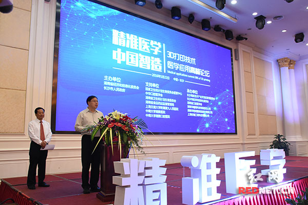 5月22日,“布局2025·第二届3D打印医疗应用高峰论坛”在长沙召开,湖南省副省长张剑飞出席并讲话。