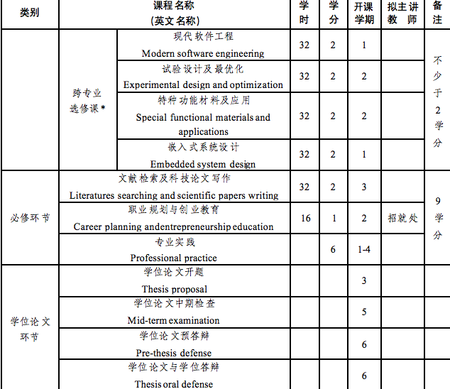 *导师和研究生可根据课题需要在学校其他专业学位点所开设的课程中,选择至少2学分的课程代替本学位点跨专业选修课程的学分要求。